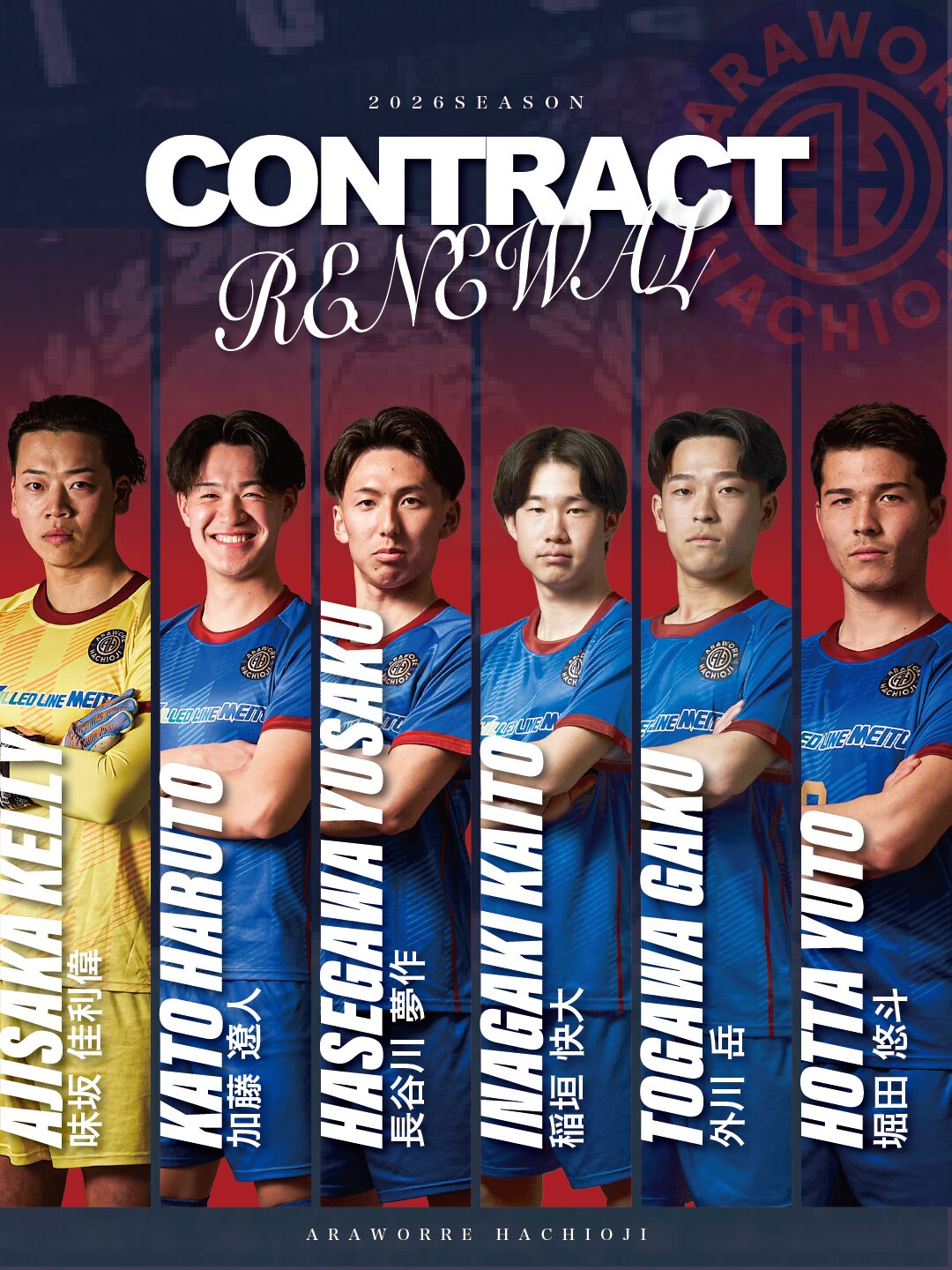 このたび、下記の選手と2026シーズンの契約を更新しましたので、お知らせ致します。