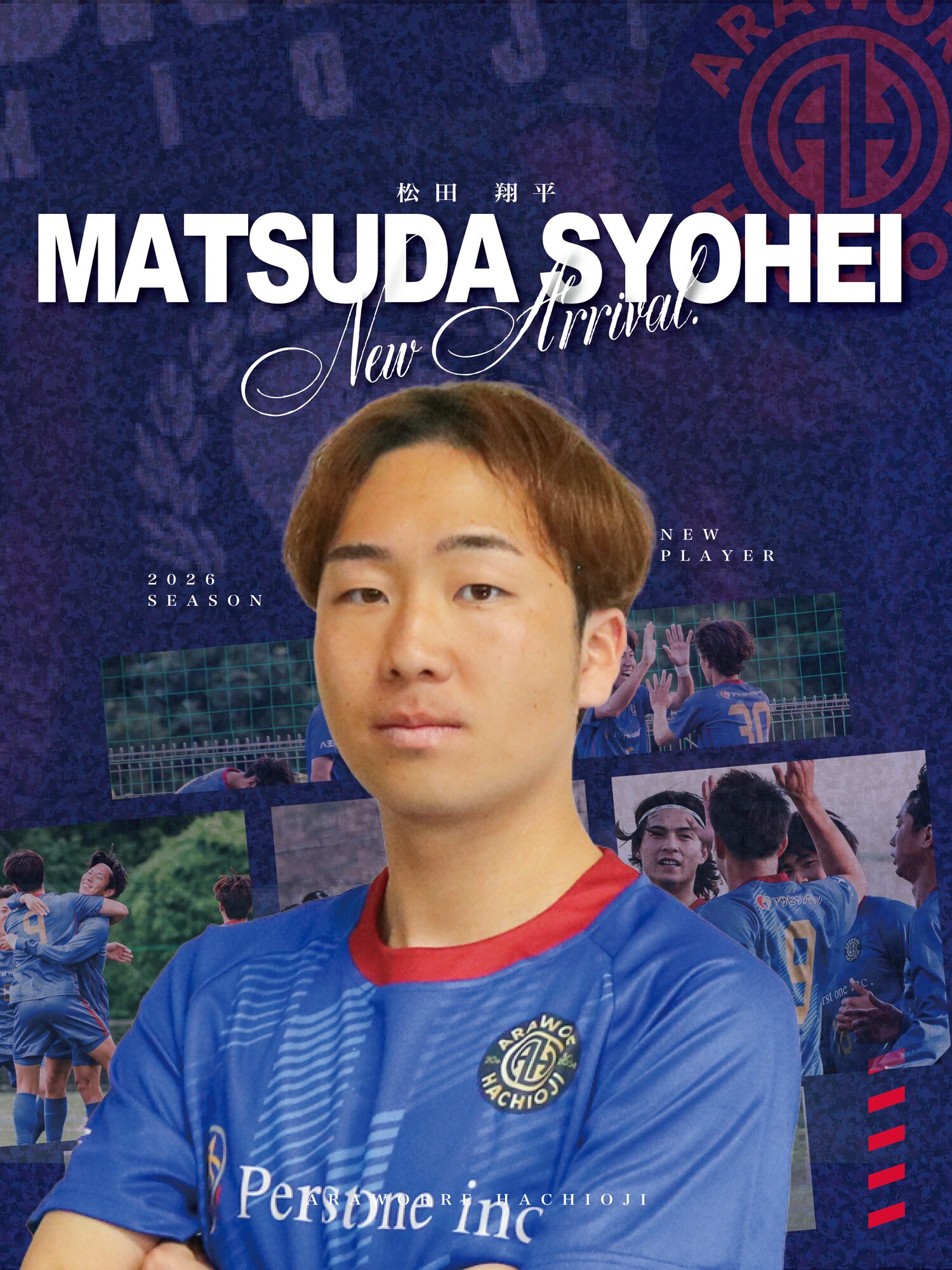 2026シーズンより、松田翔平選手(仙台大学)がアローレ八王子に加入しましたので、お知らせ致します。