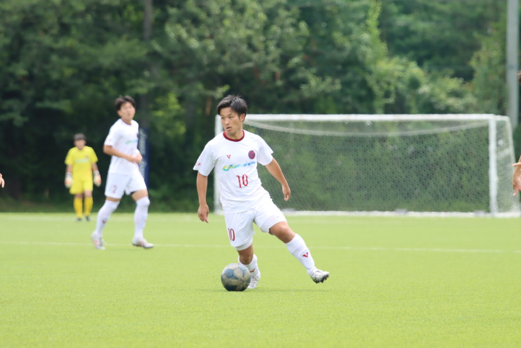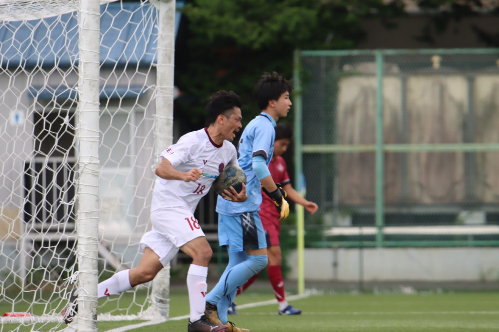 リーグ戦6試合中、実に5試合で相手に先制を許す嫌な展開となるが、前半34分、相手ゴール付近でのスローインをからリターンを受けた #16市原 拓がドリブルでPA内に切り込み、鋭いクロスを上げると、#18林 慶之がヘディングで押し込み同点に追いつく。