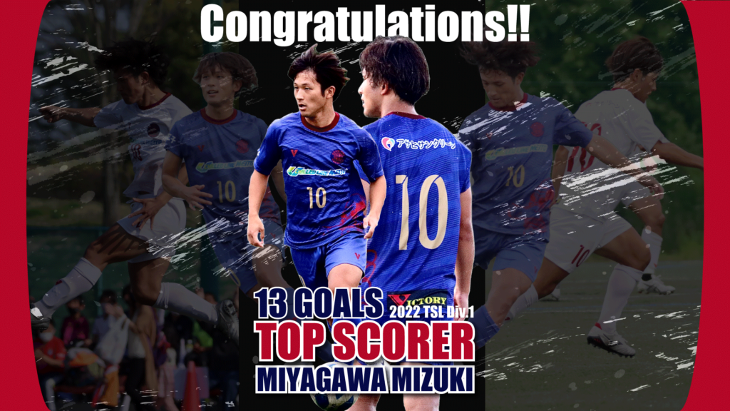 本日のリーグ戦全日程終了をもちまして、#10 宮川 瑞希選手が13得点で2022東京都社会人サッカーリーグ 上位リーグ得点王に決定しました!宮川選手おめでとうございます!