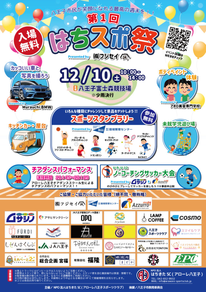 新型コロナウイルスの影響で、子どもの外遊びや市民の交流が今年も制限され、心待ちにしていた八王子まつりも中止となりました。「スポーツを通じて八王子を元気にしたい」と、願い活動する私たちに何かできる事はないか?その一心で“はちスポ祭”を開催します!
